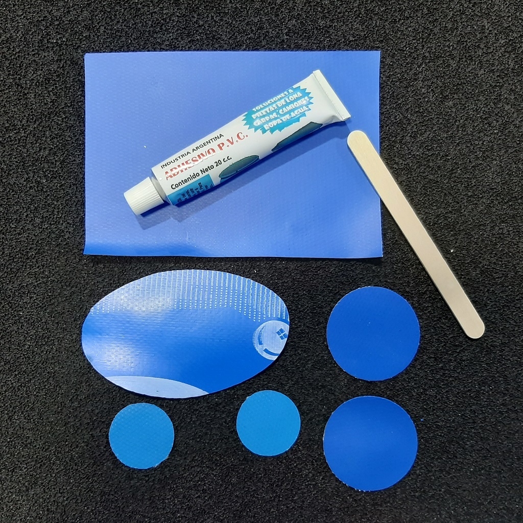 - Incluye: 6 parches de distintos tamaños, cemento de secado rapido y paleta para aplicar en pegamento.